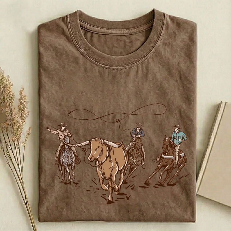 Retro Lumberjack Cowboy Riding A Bear 90s T-shirt